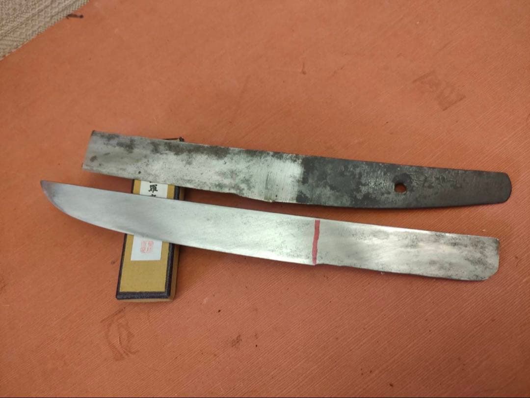 閲覧ありがとうございます!模造刀 太刀 脇差し 2本セットのご紹介です。※刀身に樋あり(バラ売り不可)<商品概要>【太刀】・全長:105.0㎝ ・刃渡り:74.5㎝(ハバキ含まず)・鞘を払って:約913g・重量:約1,131g(鞘含む)【脇差し】・全長:70.5㎝ ・刃渡り:45.5㎝(ハバキ含まず)・鞘を払って:約530g・重量:約664g(鞘含む)※素人採寸になりますので、あくまで参考値としてご了承下さい。※刀身と柄及び鍔ガタつきはございません。※鞘にヒビ割れはございません。※ある程度、刀全体の除菌作業は実施しております。※画像の刀台は含みません。<留意事項>●当方観賞用としておりましたが、細かい線傷、スレのある一般的な中古品となります。画像で全てをお伝えするのは困難なため、気になる方は購入をご遠慮下さい。●掲載している画像でご判断の上、ご理解頂ける方のご購入をお待ちしております。●ご使用になられているモニターや端末により、実際の色と多少異なる場合がございます。●交渉中でも、即購入してくれる方を優先させて頂きますので、予めご了承ください。●購入後のキャンセル申請はご遠慮下さい。●すり替え防止のため返品・返金対応は致しておりません。●全ての状態を画像のみでお伝えするのは困難なため 購入と同時に商品状態をご理解頂いたと認識させて頂きます。●その他、ご不明な点ございましたらコメントにお問い合わせ下さい。よろしくお願い致します。#日本刀 #模造刀 #模擬刀#刀 #刀剣 #カタナ #剣#コスプレ #刀剣乱舞 #とうらぶ #鬼滅#太刀 #脇差し #小太刀#陣太刀 #美術刀 #居合刀#剣道 #鎧 #兜 #竹刀 #刃#刃物 #古刀 #小刀 #軍刀 #新選組#戦国 #るろうに #サーベル#鬼滅 #刃種類···模造刀・模擬刀